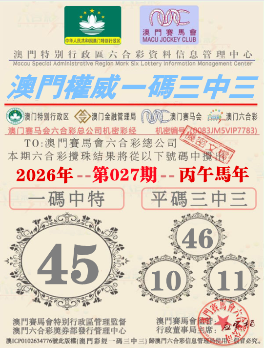 027期:【澳门权威资料】√一码三中三√ 澳门权威精准资料