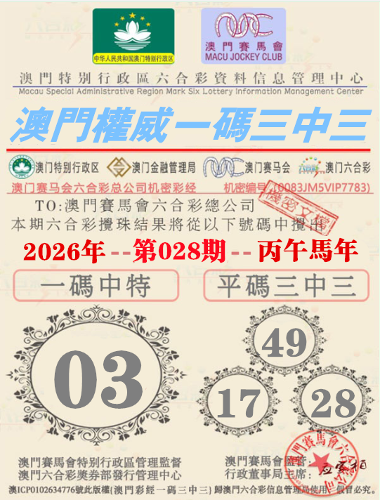028期:【澳门权威资料】√一码三中三√ 澳门权威精准资料