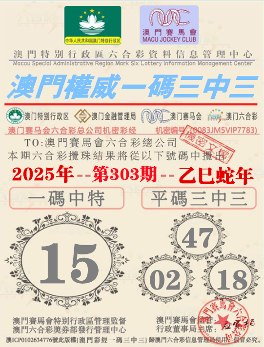 303期:【澳门权威资料】√一码三中三√ 澳门权威精准资料